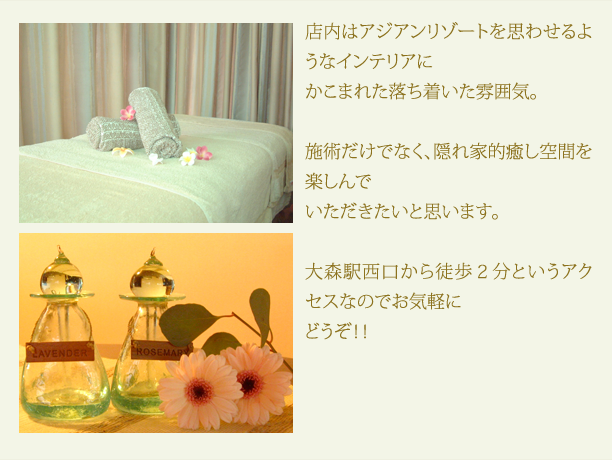 1人でも多くのお客様の笑顔のためにリラックスして身体が楽になっていただけるよう、心を込めてトリートメントさせていただきます。